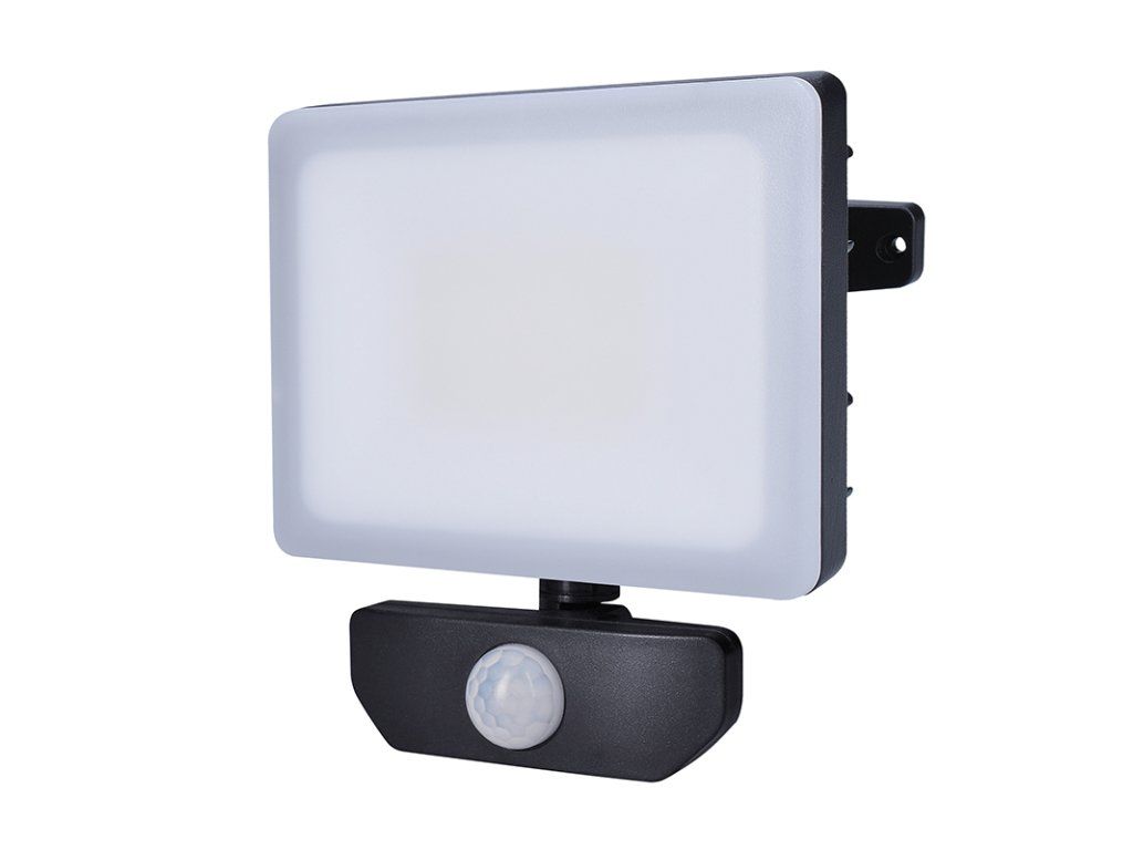 Solight LED spotlight Quick with sensor, 20W, 1700lm, 4000K, IP44, black light source: 20W SMD LED luminous flux: 1700lm chromaticity temperature: 4000K (neutral white) lED lifetime: 25,000 hours protection rating: IP44 (splash proof, suitable for outdoor use) waterproof connector for connecting the power supply light cone: 120° useful luminous flux at 120°: 1700lm sensor detection angle: 120° detection distance: max. 10m (up to 24°C) light time setting: 5s - 10min light sensitivity setting: 3-2000LUX colour rendering index: CRi>80 voltage: AC 220V - 240V, 50Hz operating temperature: -20°C to +50°C dimensions: 130 x 140 x 45mm waterproof connection connector for cable diameter 4-8mm material: die-cast aluminium colour: black energy class: FAdditional parameters