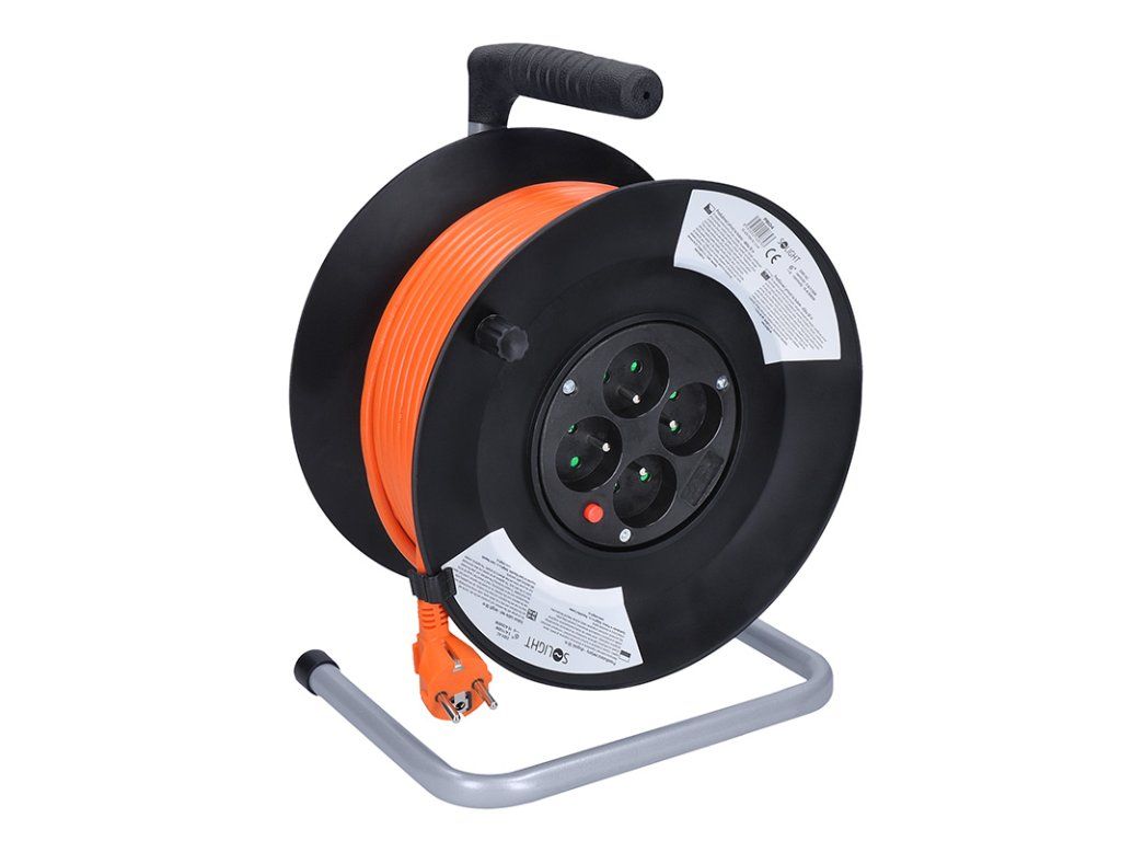 Practical drum extension lead for home and workshop The 50 metre extension cable on a reel with four sockets is ideal for use in the home, garage or workshop. It allows you to bring electricity where you need it, while keeping the cable neatly stored and clutter-free. A practical choice for everyday work and hobby use. Clear layout and easy handling PVC cable with 3×1.5 mm2 conductors is suitable for indoor and dry protected areas. The drum is equipped with four sockets with child-proof fuses, plus a thermal fuse that cuts off the power supply in the event of overload or when used without fully unwinding the cable. The colour differentiation of the cable from the surrounding environment increases safety when working. Reliable performance for common electrical appliances A maximum load of 3680 W (16 A at 230 VAC) ensures safe operation for most common appliances. The ergonomic handle allows easy carrying and quick cable winding. Ideal helper for DIY, maintenance or small jobs around the house. - number of sockets: 4 - 3 x 1.5mm2 - cable type: H05VV-F3 - thermal fuse - broken fork - colour: orange - length: 50m - load: - 5A/1150W coiled - 16A/3680W unwound Technical parameters - Length (m) 50 - Degree of protection (IP) IP20 - Colour Orange - Number of sockets 4 - Cross section (mm2) 1.5 - Voltage (V) 230 V - Switch No - Type of extension lead Winding drum - Maximum load (W) 3680 - Wireless charging No - Grounded Yes - USB charging NoAdditional parameters