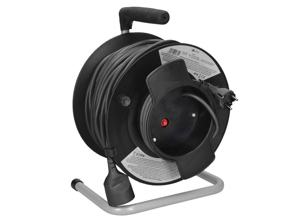 Practical drum extension lead for home and workshop The 50 metre extension cable on a reel with one socket is ideal for use in the home, garage or workshop. It allows you to bring electricity where you need it, while keeping the cable neatly stored and clutter-free. A practical choice for everyday work and hobby use. Clear layout and easy handling PVC cable with 3×1.5 mm2 conductors is suitable for indoor and dry protected areas. The drum is equipped with one socket with child-proof fuses, plus a thermal fuse to protect the supply from overheating under heavy loads or incomplete unwinding of the cable. Reliable performance for common electrical appliances A maximum load of 3680 W (16 A at 230 VAC) ensures safe operation for most common appliances. The ergonomic handle allows easy carrying and quick cable winding. Ideal helper for DIY, maintenance or small jobs around the house. - number of sockets: 1 - 3 x 1.5mm2 - cable type: H05VV-F3 - thermal fuse - broken fork - color: black - length: 50m - load: - 5A/1150W coiled - 16A/3600W unwound - length of the supply cable: 1.4m Technical parameters: Length (m) 50 Degree of protection (IP) IP20 Colour Black Number of sockets 1 Cross section (mm2) 1.5 Voltage (V) 230 V Switch No Type of extension lead Winding drum Maximum load (W) 3680 Wireless charging No Grounded Yes USB charging NoAdditional parameters