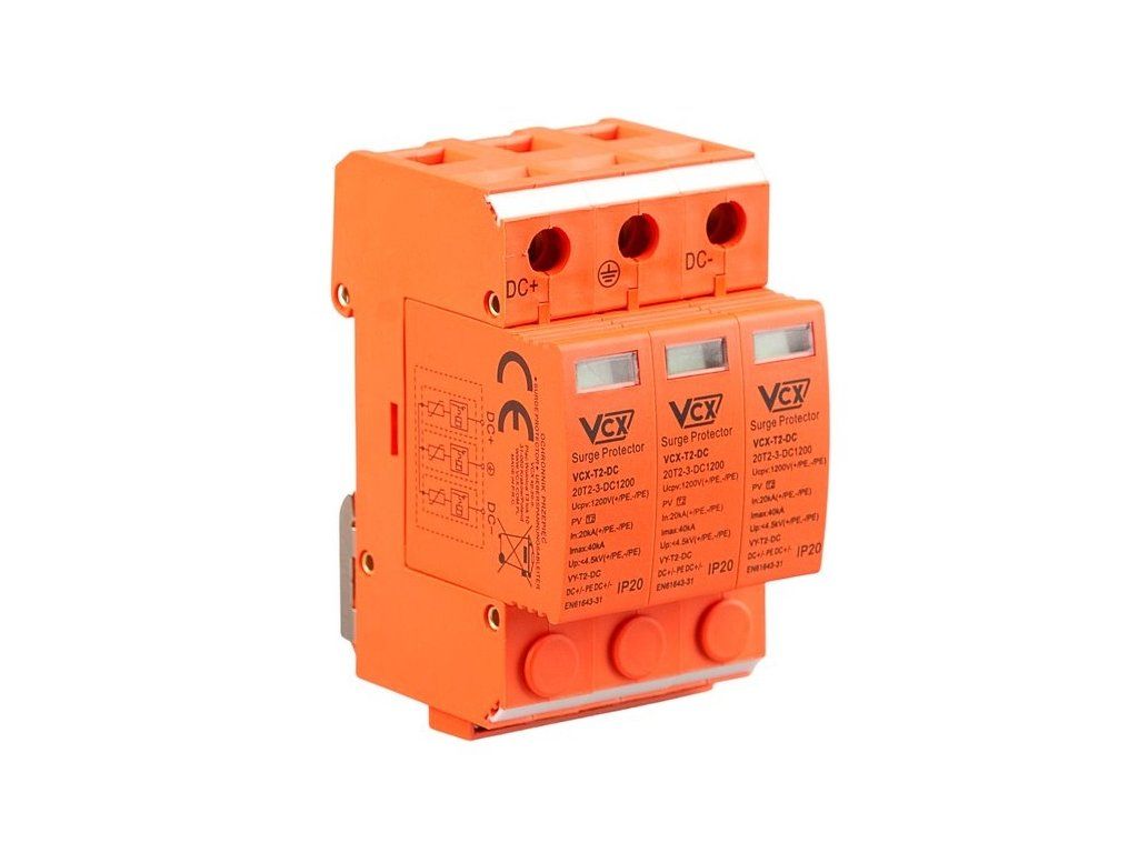Technically advanced surge protector of the highest quality designed for the protection of photovoltaic equipment operating as a class C surge protector. Equipped with a visual operation indicator (green - protection, red - no protection). New version of DC varistor arrester class T2 with voltage Ucpv increased to 1200V. X1-T2-DC-3P - protector, which is made using a high quality varistor (MOV) with high flow rate. Therefore, the use of a single varistor meets standards that other manufacturers must meet by using multiple varistors. The protector is only 18mm/1 pole wide and the total width of the 3 poles is only 54mm. In short, the VCX X1-T2-DC-3P 1200V Class T surge protector/protector is: - A special high-flow varistor. - Patented cut-out system. - Extremely precise and advanced internal structure. - Reinforced internal contacts. - Special flame retardant housing. Technical specifications - Protection class: T2 - Protective element: varistor - Connection max: 35mm2 - Rated operating voltage: Un 1200V DC - Test current: In(8/20) 20 kA (+PE,-PE) - Max current: Imax(8/20) 40 kA - Voltage protection level: up to <4.5 kV (+PE,-PE) - Storage temperature: -30/+70°C - Operating temperature: -30/+50°C - Protection rating: IP 20 Surge protection classes Surge protection is divided into 4 basic classes A, B, C and D according to location and surge magnitude. - Class A - Surge arresters located in high voltage distribution systems. Protects the distribution network, from the effects of atmospheric surges. - Class B - Lightning arrester - reduces the voltage and limits the energy of a surge wave caused by a direct or indirect lightning strike, the main protective element is a spark arrestor (lightning arrester). The construction is usually multi-part, consisting of a base and replaceable disposable modules, with optical status indication. It is installed as close as possible to the interface between the protected and unprotected environment, i.e. at the entrance of the supply cable to the building, usually in the junction boxes or the main meter cabinet. - Class C - Surge Arrester - limits surges caused by indirect lightning strikes and switching processes in networks. It is used as the second stage in a three-stage protection system. Protection is provided by a spark arrestor or by a solid-state varistor or transistor. The protection is provided once, after disconnection the arrester must be replaced. In the case of a modular design, only the disconnected module is changed. It is installed in the branch substations of the dwellings at a distance of at least 15 m (cable length) from the class B arrester. - Class D - Surge arresters designed for the protection of highly surge sensitive equipment. Reduces voltage and limits surge energy caused by indirect lightning strikes or network switching processes. Use in residential and commercial applications as the third stage (soft protection) in a 3 stage surge protection system. Single protection provided by a semiconductor varistor or transistor. Installation must be made as close as possible to the protected equipment, usually in the form of sockets or extension leads with optical or acoustic switch-off signalling. Overvoltage - division - Switching overvoltages - internal influences, influenced by switching processes in the network. - Atmospheric voltages - external influences, most often a lightning strike on the power grid. Why get a surge protector? At first glance, the purchase of surge protectors seems like a significant investment. However, if you are hit by a switching or atmospheric surge, the investment in a surge protector is a small amount compared to if your appliances (TV, fridge or washing machine) are irreparably damaged or your wiring burns out. For proven electrical surge faults, appliance manufacturers do not accept claims. If you are building a new house today, having surge protection installed is desirable. When lightning damage occurs, surge protection plays a big role in whether or not an insurance claim will be made. For this reason, getting a surge protector is a highly cost-effective investment that will secure your home. NOTICE Due to the risk associated with possible incorrect connection of the equipment, we recommend that installation is carried out by a qualified person with an electrical qualification. We are not responsible for improper wiring and any damage caused by it.Additional parameters