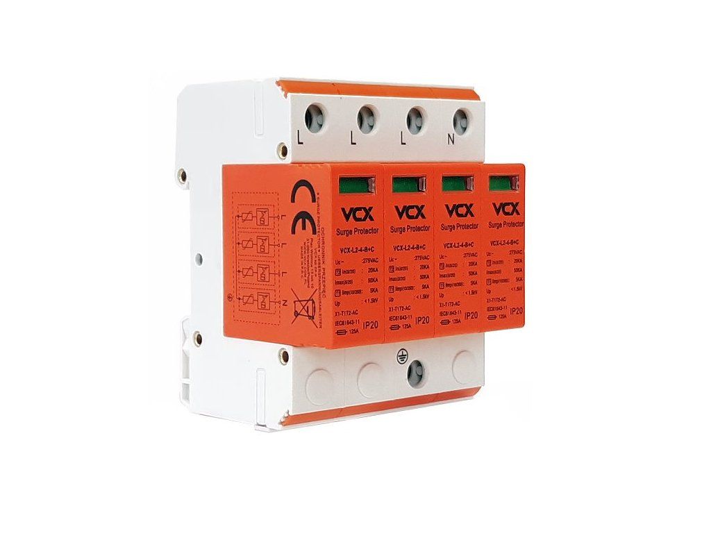 Modular surge protector VCX L2-4-B+C 5kA class T1 T2 is designed to protect LV power installations against induced and switching overvoltages.