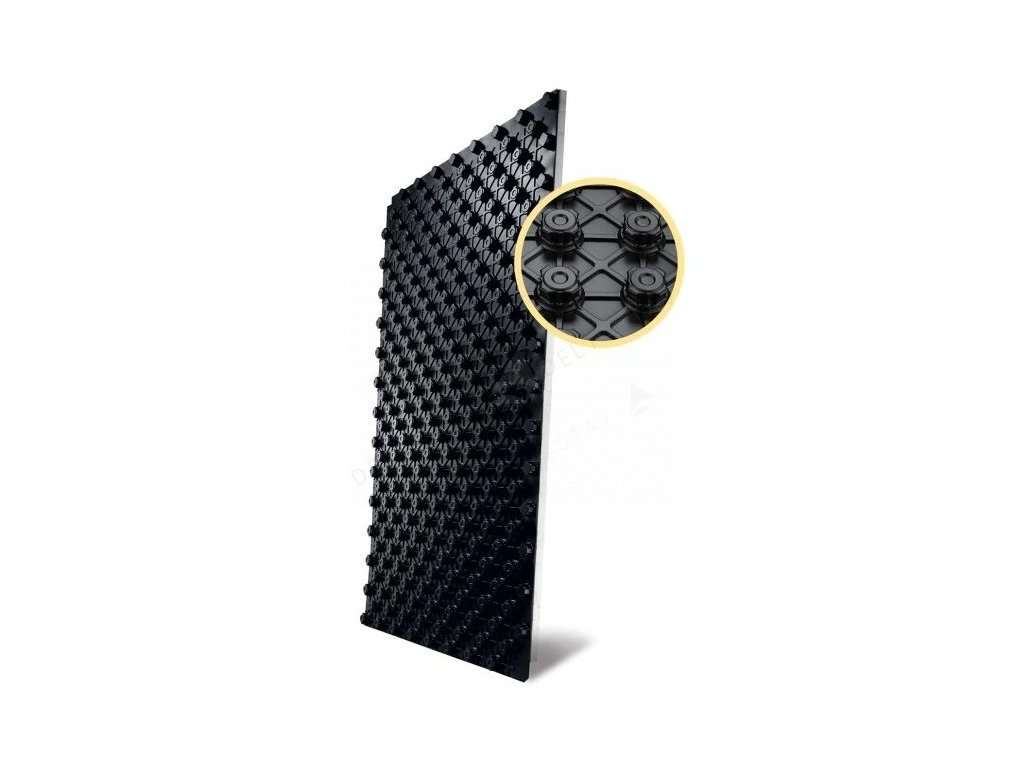 The upper part of the slab consists of octagonal protrusions (mushrooms) with overhangs allowing quick and easy installation (the pipe does not subsequently jump out) of any pipe with a thickness of 14 to 18 mm.