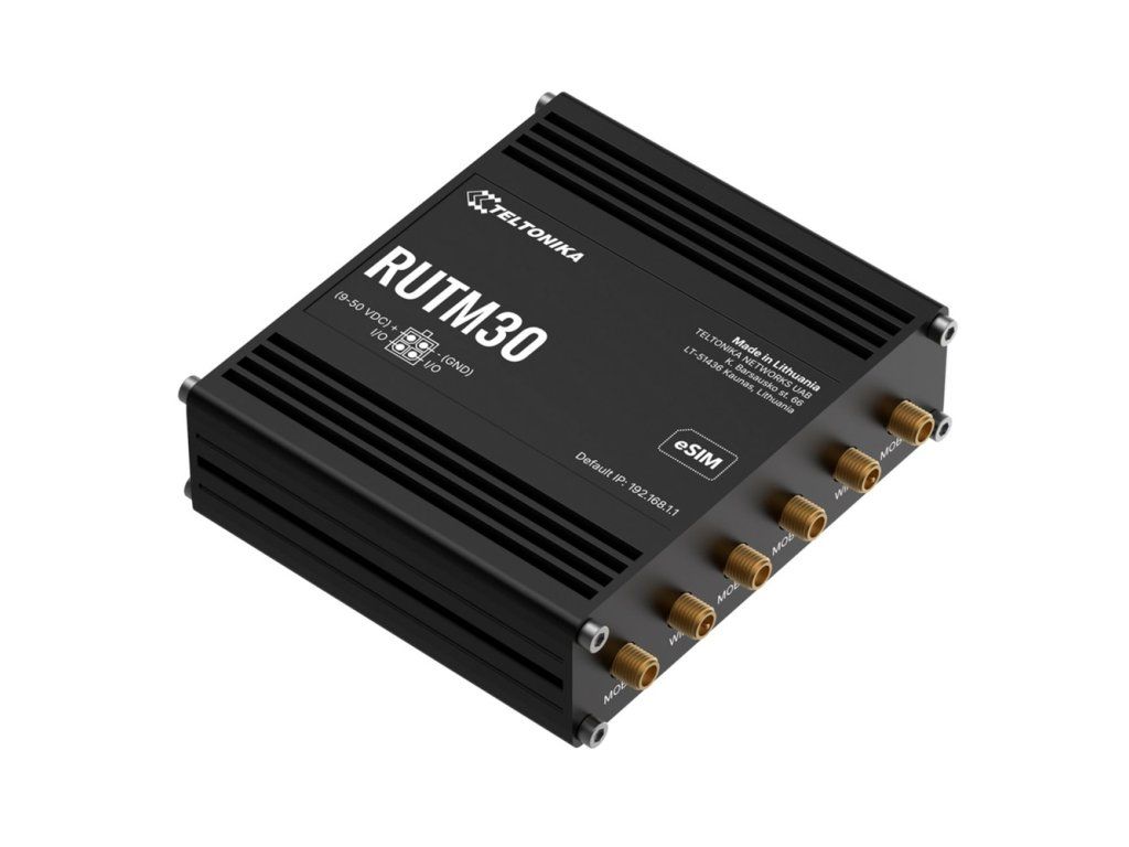 The RUTM30 is a compact dual-SIM and eSIM™ router that provides 5G mobile connectivity for data-intensive applications. It features 2 gigabit Ethernet ports and dual-band Wi-Fi and offers data redundancy with automatic failover when the primary connection fails. The device is backward compatible with 3G, 4G, 5G and LTE Cat 19, ensuring long-term network expandability and easy upgrades. The RUTM30 is ideal for a variety of IoT and M2M installations that require high-speed connectivity, easy setup and remote access. Key Features - CONVENIENCE: 5G, 4G Cat19 and 3G - DUAL SIM: Switch to backup connectivity (SIM2) in case of primary connectivity failure (SIM1) - eSIM™: Seamless connectivity with eSIM™ SGP.22 - SA & NSA: Stand Alone and Non Stand Alone network support Advanced network features The router offers rich network capabilities including VoIP pass-through, connection monitoring, firewall, hotspot, DHCP, QoS, DNS over HTTPS, DDNS, network backups, load balancing and advanced traffic management. Professional-grade security Integrated TPM 2.0 module, authentication, firewall, attack prevention, VLAN, mobile data control, web filter, access control, SSL certificate generation and 802.1x support provide a high level of security. Advanced management options Devices can be managed via web interface, FOTA updates, SSH, SMS, call, email, TR-069, MQTT, SNMP, JSON-RPC, MODBUS, and remote RMS management. Basic Specifications: Processor: MediaTek, dual-core, 880 MHz, MIPS1004Kc Memory: 256 MB DDR3 RAM, 16 MB NOR flash, 256 MB NAND flash Cellular connectivity: 5G Sub-6GHz SA/NSA, 4G LTE Cat 19, 3G Ethernet: 2× RJ-45 ports 10/100/1000 Mbps (1× WAN, 1× LAN) Wi-Fi: 802.11b/g/n/ac Wave 2 (Wi-Fi 5), dual-band, MU-MIMO Antenna connectors: 4× SMA for cellular, 2× RP-SMA for Wi-Fi SIM: 2× mini SIM slots (2FF), 1× integrated eSIM Power: DC 9-50 V, 4-pin industrial connector Operating temperature: -40 °C to 75 °C Dimensions (W × H × D): 100 × 93.7 × 30 mm Weight: 319 g Operating system: RutOS (Linux based on OpenWrt) Package contents: 1x RUTM30 1x Power adapter 4x 5G SMA antenna 2x WiFi dual band antenna 1x Ethernet cable 1.5m 1x SIM adapter kit 1x Qiuck start guideAdditional parameters
