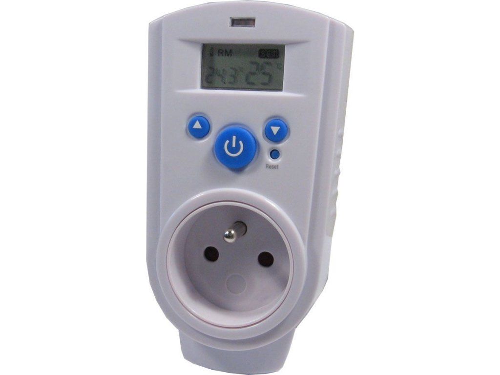 Digital plug-in thermostat suitable for heating and cooling control. Temperature adjustable from 5 to 30°C. Features: adjustable temperature 5-30°C (in 1°C increments) actual temperature measurement easy operation possibility to set inversion mode for cooling power supply: 1×CR2032 5W standby power consumption resistive load max. 3500W inductive max. 2000WAdditional parameters