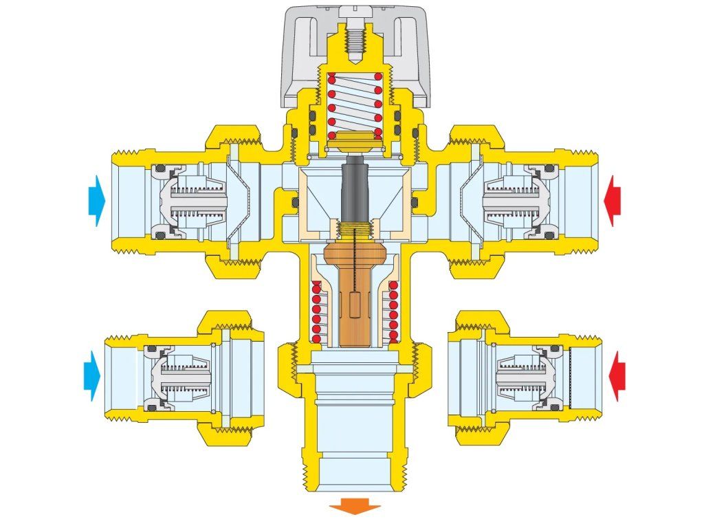 Thermostatic mixing valve 3/4", +30 to +50 °C, PN 10, T max.+85 °C, check valve, filter, scald protection