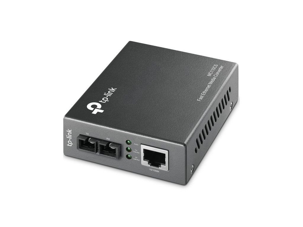 The MC110CS is a media converter designed to convert media from 100BASE-FX optical line to 100BASE-TX metallic line and vice versa. The MC110CS media converter, which has been designed to IEEE 802.3u 10/100Base-TX and 100Base-FX standards, is intended for use with singlemode fiber optic cable with an SC-type connector. The MC110CS media converter supports the long-wavelength laser (LX) specification at maximum packet forwarding rates. It uses a wavelength of 1 310 nm for both receiving and sending data. Additional features of this module include the ability to be used as a standalone device (no chassis required) or with a TP-LINK 19' chassis, automatic MDI/MDI-X detection for the TX port, automatic duplex mode negotiation on the TX port, and front panel status LEDs. The MC110CS supports data transmission over single mode fiber optic cable over distances up to 20 km. Technical parameters Physical characteristics Operating temperature [°C]: 0 to 40 Depth [mm]: 95 Width [mm]: 73 Height [mm]: 27 Connectors and interfaces Connectors: (2) SC LAN speeds: (1) 10/100Mbps Power Max. power consumption [W]: 1.5 Power supply type: DC connector Power supply via connector/socket: 9V / 0.6A Optics For cable type: Single Mode Transmission Speed: 100 Mbps Wavelength - Tx/Rx [nm]: 1310 Range [km]: 20Additional parameters