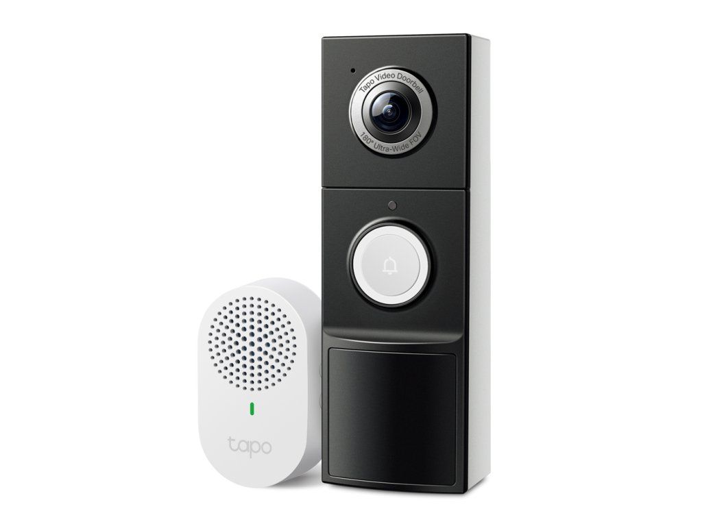 Video doorbell with 5MP camera and microSD card storage up to 512 GB. The outdoor unit has a 170° wide-angle horizontal viewing angle, two-way audio, H.264 encoding, IR illumination up to 10m, IP66 water resistance, 2.4 GHz WiFi wireless transmission for communication with the indoor doorbell and a 10000 mAh battery. Key Features - Long battery life or wired connection: 10000 mAh battery with up to 210 days on a single charge or hardwired (8-24V). - Wide field of view: 180° diagonally, 170° horizontally, 140° vertically. - 2K resolution: Incredible 5MP sharpness. - Weatherproof: Reliable operation in any weather thanks to IP66 - Local and cloud storage: Support for microSD cards and Tapo Care cloud services. - Built-in reflectors provide color night vision. - Two-way audio: Communicate in real-time with guests and delivery drivers at your door with clear two-way audio. Package Contents - Device + indoor doorbell - Mounting accessories - USB cableAdditional parameters