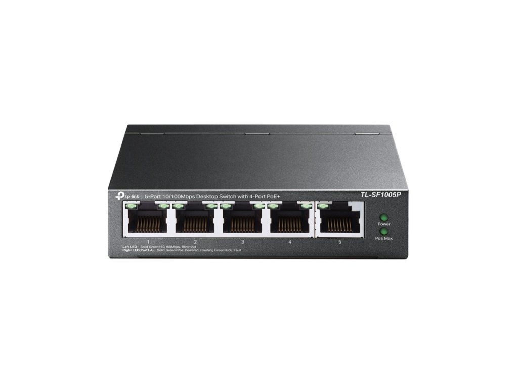 The non-manageable TL-SF1005P features five ports with 10/100 Mbps transmission speeds that require no configuration and offers 4 ports with Power over Ethernet (PoE). It can automatically detect and power any PD (Powered Devices) that comply with IEEE 802.3af protocol. In this design, power is transmitted along with data over the same cable, allowing you to extend your network to places where there are no power connections or outlets, but where you want to use devices such as access points, IP cameras or IP phones, etc. Package contents - Device - 48V / 1.25A power adapter - Power cordAdditional parameters
