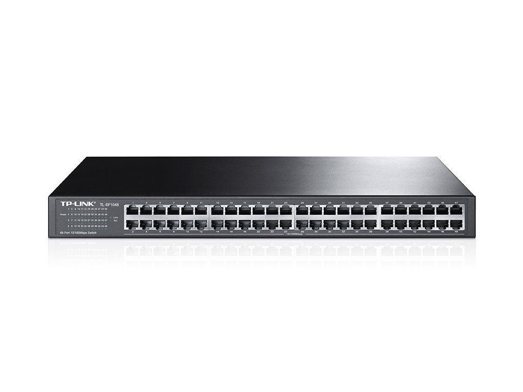 the 48-port TL-SF1048 Fast Ethernet switch meets the most demanding connectivity requirements of workgroups and departments. Featuring reliability and easy management, the TL-SF1048 switch provides 48 10/100 Mbit/s ports. The TL-SF1048 combines ease of use with unmatched performance. The result is an exceptional value for cost-conscious network administrators who want the best solution at the best possible price. Package Contents - Device - Power cord - Mounting kit for installation in a 19" rackAdditional parameters