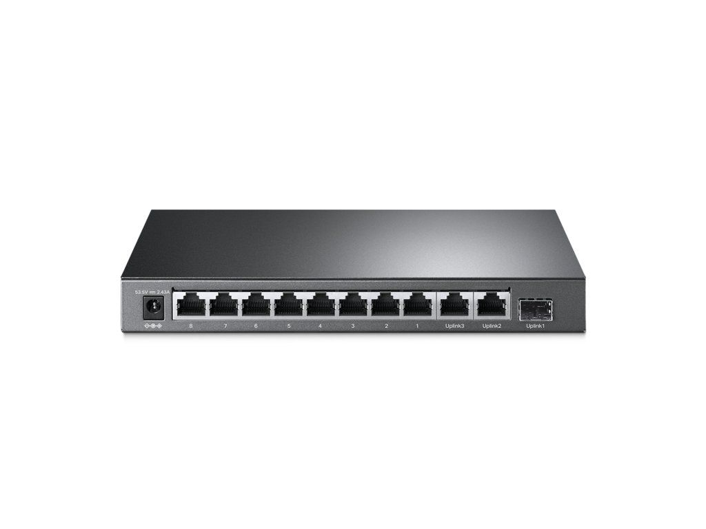 TP-Link TL-SG1210MP is a Gigabit desktop dumb (non-manageable) switch in a durable metal chassis with 10x Gigabit LAN and one combo SFP, of which 8 Ethernet ports also support PoE out 802.3af/at to power cameras, access points and similar devices with active PoE support. The total PoE budget on ports 1 to 8 is 123W with a limit of 30W/port. The switch has small switches on its front for port isolation, port prioritization in case of PoE overload, and PoE extended mode where it can reduce the line rate to 10Mbps on ports 1-4, achieving a range of up to 250m. Package contents - Device - 53.5V/2.43A power adapterAdditional parameters