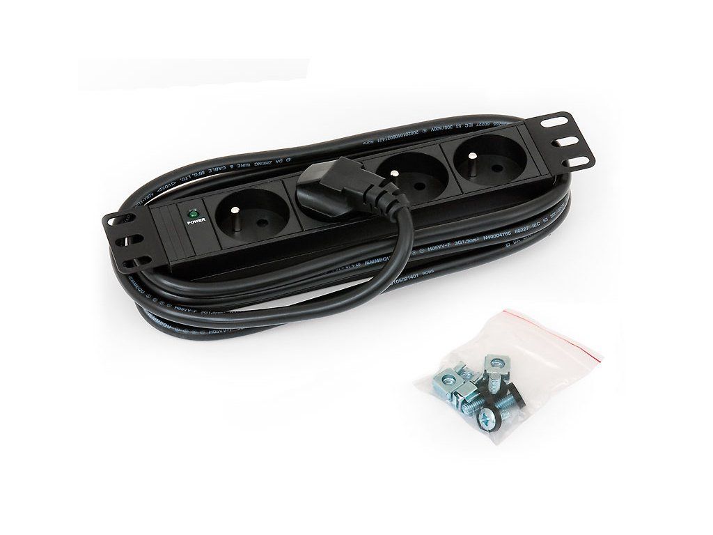 10" distribution panel, 4x socket according to ČSN, max 16A, cable 3x1.5mm 2m + plug universal CZ-DE max 16A, indicator light, RAL 9005 Technical parameters: number of sockets: 4 x CSN cable length: 2m cable type: 3x1.5mm max.load: 16A colour: black CABLE 2x Screw M6 x 16 with washer 2x Floating nut M6Additional parameters