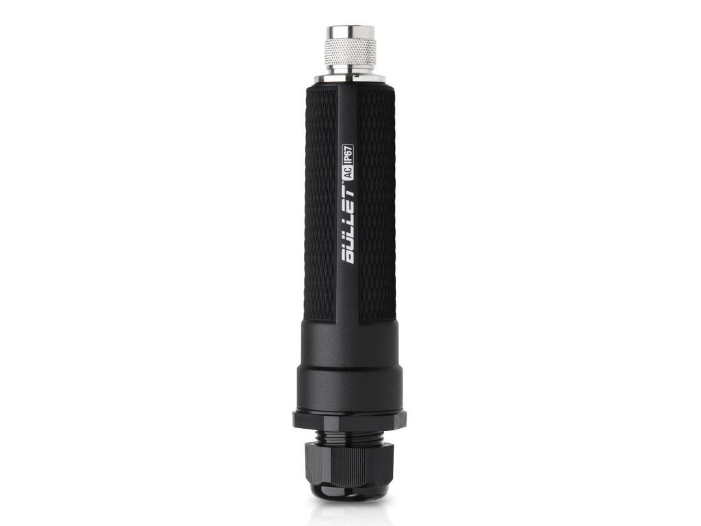 The new dual-band bullet in aluminium housing as a successor of the airMAX series is a universal single-polarization radio unit with N-male connector that allows it to be mounted directly on the antenna. In addition to the commonly used 5GHz band, the unit also supports the 2.4GHz band. In both cases it is only compatible with other airMAX ac series products. The unit has a single Gbit Ethernet port that allows you to take advantage of the full capabilities of the 802.11ac standard. Power is supplied via a 24V/0.5A DC POE adapter, which, as with previous bullets, is not included. With a maximum channel width of 40MHz for the 2.4GHz band and 80MHz for the 5GHz band (for PtP mode), the compact radio boasts modulation speeds of 216Mbps in the 2.4GHz band and 433Mbps in the 5GHz band. The band in which the device should operate (2.4GHz or 5GHz) is selected when configuring the device. Package contents - Unit - Waterproof grommet - N-male - N-female angle couplerAdditional parameters