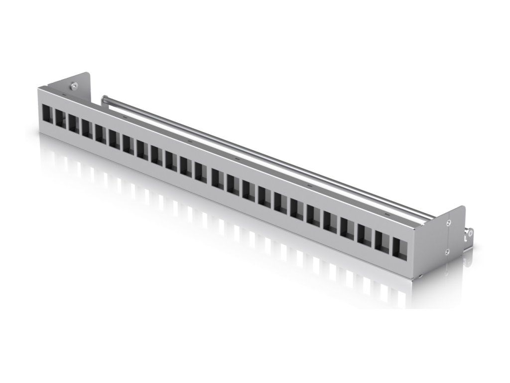 Unset patch panel with 24 keystone positions in Unifi design for maximum aesthetics. Keep your installations uniform and stylish. The silver-colored patch panel blends perfectly with other UniFi network elements. The panel can also be completed with blanking plugs for unused fitted and unfitted positions. The patches are again in the UniFi uniform design. Panel height - 1U, mounting in standard 19" racks. Technical parameters Physical characteristics Number of connectors: 24 Patch panel type: Unmounted Size: 19" Number of "U" positions: 1 Width [mm]: 442 Height [mm]: 44 Depth [mm]: 72 Color: SilverAdditional parameters