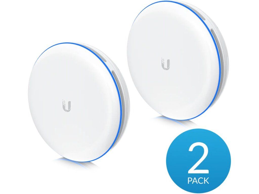 The UniFi Building to Building Bridge XG is a very compact 60 GHz point-to-point (PtP) device with 802.11ad/ay support and built-in 5 GHz backup (WiFi 5 - 802.11ac) from Ubiquiti Networks with a range of up to 500m+ is ideal for connecting two buildings over a short distance. The device is equipped with a Gigabit LAN port with PoE support, one SFP+ port and Bluetooth for easy setup from your mobile via UniFi Network apps. The device supports bridge mode only and supports both 2160 and 4320 MHz channel bandwidth in the 60GHz spectrum. The maximum throughput claimed by the manufacturer is 6 Gbps. Key Features Compact size - 192 × 192 × 59 mm Low-interference 60 GHz spectrum - 58 to 64 GHz Range of 500 m+ Antenna gain: 22 dBi (14 dBi for 5GHz antenna) Radio power (TX): 33 dBm Throughput 6 Gbps at 60 GHz, 866 Mbps at 5 GHz Supports higher bandwidth channel bonding - 2160 and 4320 MHz Supported Channels: 58320, 59400, 60480, 61560, 62640, 63720, 64800-depends on application site Gigabit LAN port with passive PoE support (48V DC), max. power consumption 31.2W Setup via UniFi Network app from version 6.3 onwards Package contents 2x Devices 2x Fine-tuning bracket 2x 48 V/0.65 A PoE power adapter 2x Power cableAdditional parameters