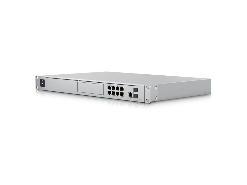 The UniFi Dream Machine Special Edition from Ubiquiti Networks is an all-in-one networking solution for small to mid-sized businesses. It is a high-performance 1U device in a 19" rack size and combines the following features: Managed 8-port Gigabit PoE Switch with one SFP/SFP+ port and VLAN support (6) 802.3af (max. 15.4W/port) + (2) 802.3at (max. 30W/port) Multi-WAN capability via 2.5-Gigabit Ethernet or SFP/SFP+ port USG - UniFi Security Gateway or Router with advanced IDS/IPS and DPI features UniFi Controller UniFi Video - An empty 3.5" HDD slot is used to store camera footage Backup power support via SmartPower connector 1.3" Touchscreen display for up-to-the-minute network status monitoring Very high performance The UniFi Dream Machine Special Edition offers significantly higher performance than the previous generation UniFi Security Gateway. The device is equipped with a 4-core ARM Cortex-A57 CPU clocked at 1.7 GHz, 4 GB of RAM and 16 GB of internal eMMC storage. With such equipment, the throughput test using iPerf3 showed a respectable 3.5Gbps. Benefits of UniFi solutions Zero Handoff Roaming - failover between APs Wireless uplink (useful where a data cable cannot reach) Up to 4 SSIDs Detailed traffic statistics Guest network Load balance - maintain a steady load / switch clients Rate limiting for each SSID Package Contents - Device - 19" rack mounts - Power cordAdditional parameters