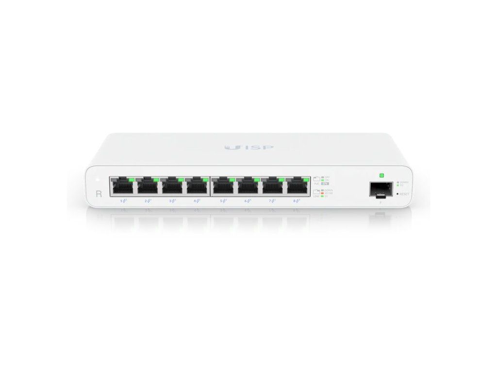 The UISP-R is the ideal router for deployment among ISPs. It is a fanless router with 8x Gigabit LAN and one SFP port for further expansion via fiber optic. The UISP Router is a cost-effective solution where gigabit wireless speeds need to be delivered quickly and inexpensively. With a total 110W PoE budget and a maximum of 30W/port, the router provides significant power to each connected radio in the PoE ports. For larger deployments, pair it with the UISP Console to create a cohesive routing and switching hub. The UISP Router is managed by the UISP app, a centralized platform where you can monitor and manage all your UISP devices. Key Features (8) Gigabit LAN with support for passive 27V PoE and power over 2 or 4 wire pairs (1) 1Gb SFP port 110W PoE budget, max 30W/port Quiet fanless operation Wall mountable - kit included Easy setup using Bluetooth technology via UISP mobile app 1.4.0-beta.11 and higher Contents of the package - Device - Power cable - Power adapter 27V / 4.4A - Wall mounting kitAdditional parameters