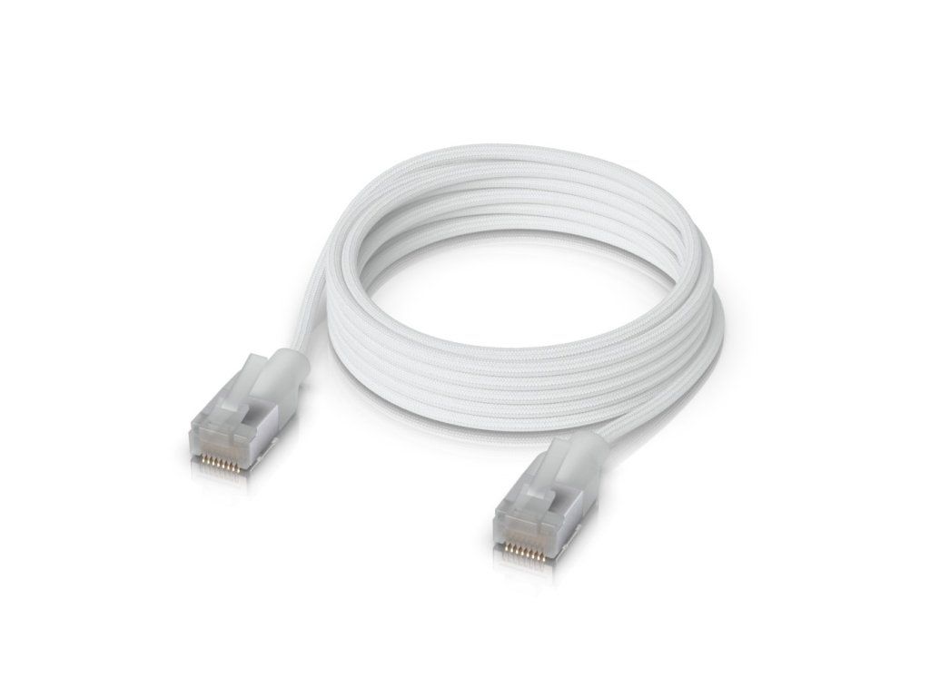 Ultra-thin Cat6a patch cable with translucent caps is specifically designed for use with UniFi Pro Max Series switches and is suitable for 10Gbps networks. The cable interactively displays the status of the Ethernet ports with light effects. The outer diameter of the cable is only 3mm and the total length including connectors is 3m. As is customary with UniFi solutions, the cable comes in a sleek white color and is designed for indoor use. Contents of the package (1) Ultra-thin patch cable Technical parameters Physical characteristics Shielding type: SFTP (S/FTP) Cable type: Cable (licna) Use: Indoor Sheath Material: Braided Length [m]: 3 Colour: White General CAT6a Bandwidth [MHz]: 500 Supported Protocols: 10G Base-TAdditional parameters
