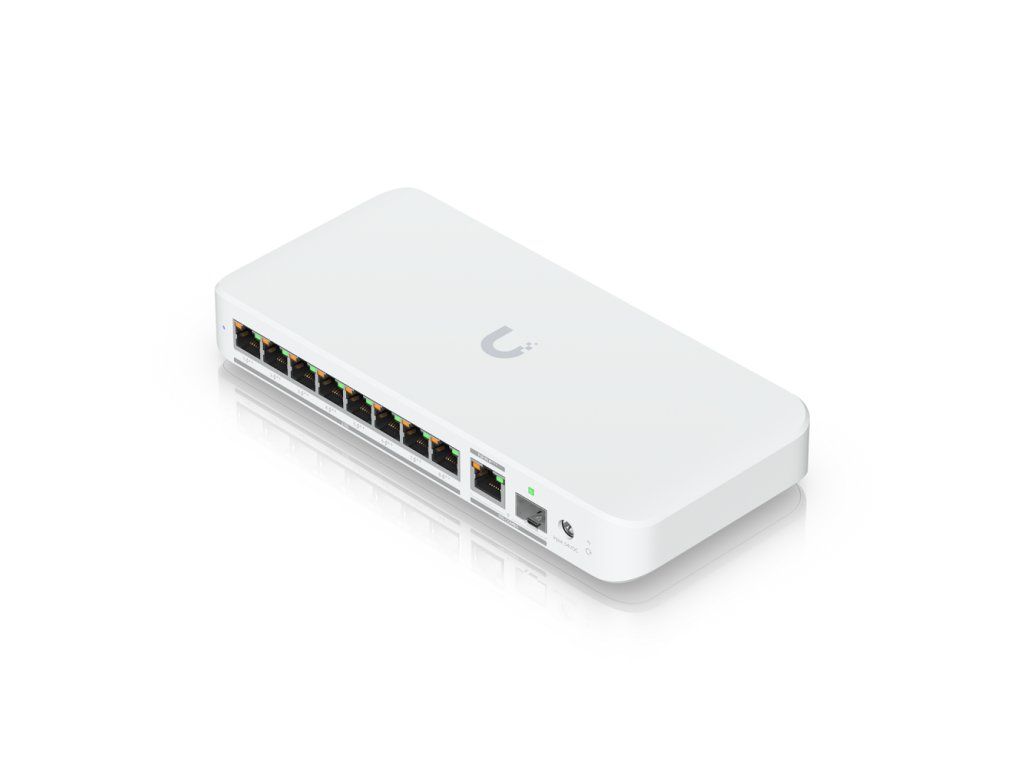The Ubiquiti UniFi Switch Flex 2.5G PoE is a compact switch designed for network expansion in home and office environments, especially for connecting powered devices. It offers 8x 2.5Gbit ports with 802.3af/at/bt PoE support (POE++ 60W), allowing easy integration of devices with higher data rates, such as modern access points, servers or NAS storage. The total PoE budget reaches up to 196W when powered by a DC adapter. When the switch is powered by PoE, the PoE budget ranges from 12W - 57W. The switch supports management through the UniFi Network app, making it easy to configure and monitor the network. A 10G RJ45/SFP+ combo port serves as the uplink. One of its key features is the support for power over Ethernet, which means that the device can be powered directly via a network cable using the PoE input on the uplink port (90W 802.3bt / POE++), or then using a 54V DC / 3.9A adapter (adapter not included). Although the uplink port is a combo port, not only can one of the ports be used, but also the metallic port can be used for power and the optical port for data. Its minimalist design makes it ideal for placement on a desk or wall mounting. With an optional kit, DIN rail mounting is possible. It is fully compatible with UniFi products and allows for easy scaling as needed. UniFi Network v9.0.108 and later is required for device management. Package Contents: Device Drilling Template Wall mount Mounting kitAdditional parameters