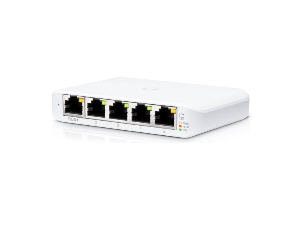 The USW-Flex-Mini is a tiny 5-port Gigabit switch with UniFi Controller management from Ubiquiti Networks in a desktop design with the first port supporting PoE In. PoE IN on Eth1 Its biggest advantage is the Gigabit POE IN on port #1 for easy network expansion even in places where a power outlet cannot be built. The switch can be powered both actively (802.3af/at) and passively using a 44-57V adapter. In addition to PoE, the switch can also be powered via a USB-C adapter with a 5V/1A specification. Management via UniFi Controller The fundamental difference between the UniFiSwitch and EdgeSwitch series is in management - the WebGUI management of EdgeSwitches is replaced by the UniFi Controller on UniFiSwitch models. Package contents - Device - 5V/1A power adapterAdditional parameters
