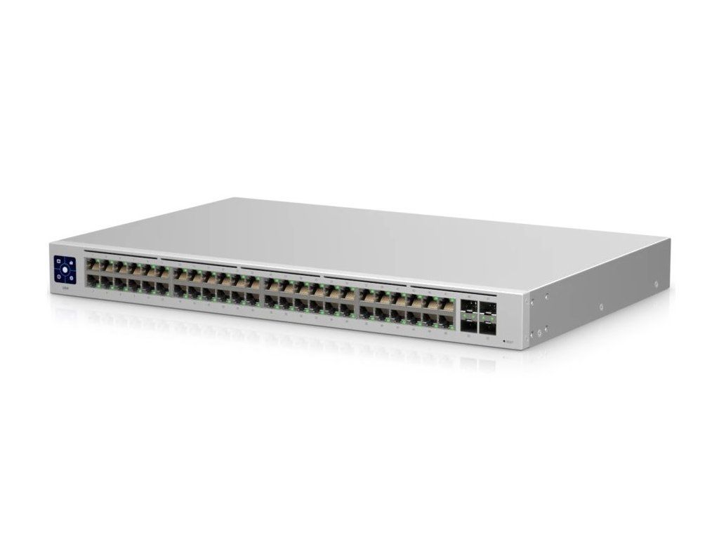 The USW-48 is a fully manageable switch with 48x 1Gbps Ethernet ports and 4x 1Gbps SFP ports. The switch is equipped with a wide range of L2 features and is completely silent - no fans. Thanks to the UniFi Network Controller and UniFi Network mobile app, you can configure and manage all switch features using an intuitive graphical interface from anywhere. Features and functions 48x 1Gbps Ethernet 4x 1Gbps SFP port L2 functionality Fanless 1.3" touchscreen display, UniFi Network AR support Manage with UniFi Network Controller (5.3.10+) Package contents Device (2) 19" rack mounts Power cableAdditional parameters