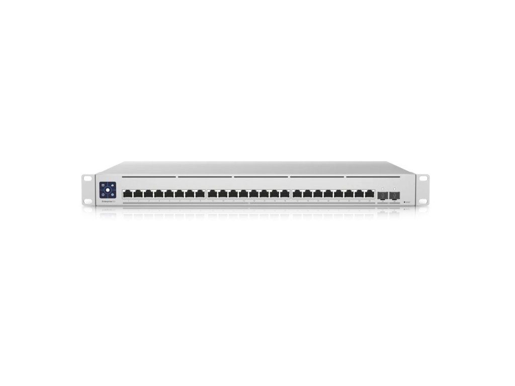 The USW-EnterpriseXG-24 is a fully manageable Gigabit L3 switch with 24× 100M/1G/2.5G/5G/10G LAN ports and two SFP28 ports with 1/10/25 Gbps data rate. In addition to the standard features, the switch also has a 1.3" touchscreen display to provide system information, temperature, port statistics and much more. Key Features (24) 100M/1G/2.5G/10 Gbps metallic LAN (2) 1G/10G/25G - 2× SFP28 optical port (*Two SFP28 ports do not support mixed speed in 25 Gbps mode. Once one of the SFP28 ports is configured to 25 Gbps mode, the others will also be limited to 25 Gbps. SFP28 ports support mixed speed only when all ports are at 1 Gbps or 10 Gbps.) Backup power via SmartPower RPS connector 1.3" touchscreen display L3 function Only one row of ports for easier cable management Supported in UniFi Controller since version 6.1.67 Management via UniFi Controller The USW-Pro-24 does not have web-based management but is centrally managed via UniFi Controller with UniFi mobile app support and offers an extensive set of advanced L2 switching protocols and features, including operational mode (switching, mirroring or aggregation) per port. The UniFi Network Controller and mobile app allow administrators to configure and monitor virtually all switch features in a graphical user interface from anywhere. Redundant power supply This generation of switches supports redundant power through a dedicated connector to the UniFi SmartPower unit in the event of a primary power failure at the switch. Package Contents - Device - Power cord - 19" rack mountsAdditional parameters