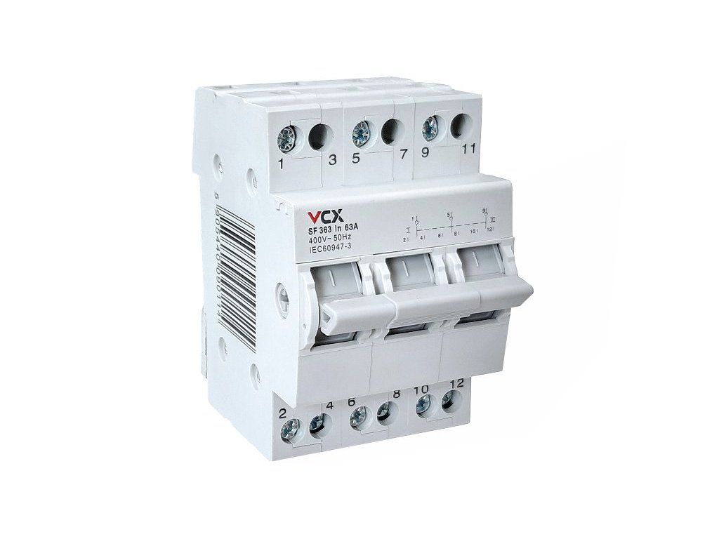 VCX SF363, 1-0-2, 3P, 63A, DIN rail mounted, power supply selection switch