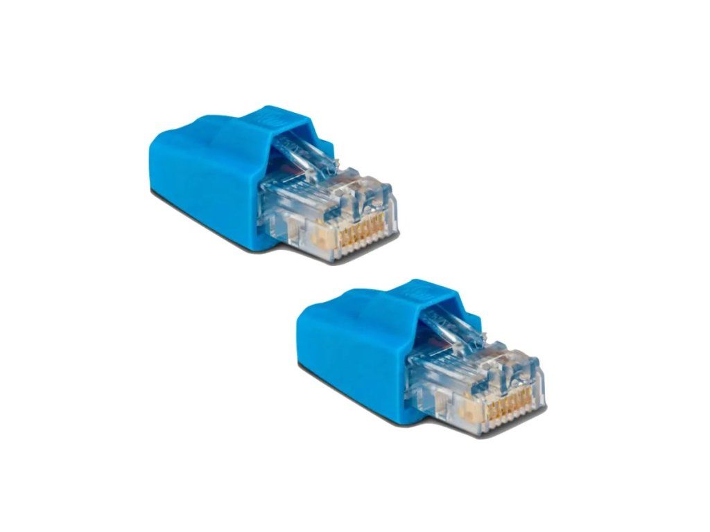 Victron VE.CAN RJ-45 terminating terminator RJ45 set 2 pcs. This set is used to terminate the communication bus, which is usually implemented using RJ-45 cable (standard network cable, similar to those used in computer networks), to ensure proper and stable communication between devices in the Victron system. A properly wired terminator ensures that all connected components will communicate properly without errors or unwanted signal distortion. The main purpose of the Victron RJ-45 terminator: - Termination of communication: the terminator is used at the end of the communication chain of devices connected to the Victron system that use the VE.Bus protocol (for Victron inverters) or VE.Direct (for communication with various devices such as BMS or solar controllers). Without proper termination, communications could suffer from unwanted reflections or signal distortions, leading to instability or system failure. - Ensuring proper system operation: In some Victron systems, when there is a network of multiple devices, a terminator is required to ensure that all connected devices function properly. - Simplify installation: this kit can simplify configuration and ensure that communication between devices works reliably. Electrical wiring: The electrical wiring of the RJ-45 terminator is essentially very simple. The terminator has connectors that connect to the RJ-45 connector on the last device on your communications bus. In some cases, the terminator may connect directly to the communication between two devices, or to the end of a communication cable to close the network. Basic Specifications: - RJ-45 connector - Number of pieces in the package: 2 - Color: BlueAdditional parameters