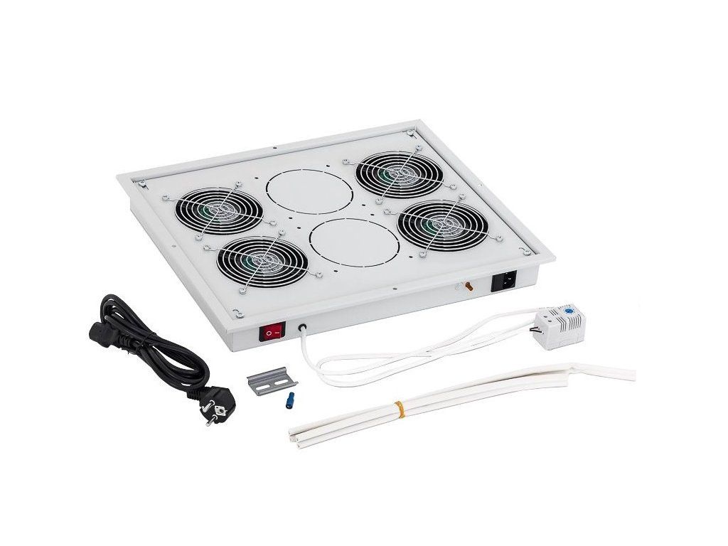 19" horizontal ventilation unit, 4 fans, 2U, 220V/60W, thermostat. Specifications: height: 2U placement: bottom/top fan: 4 x thermostat: yes cable type: 3x1,5mm colour: grey power consumption: 60 W power supply: 100- 240V These ventilation units are designed specifically for rack-mounted switchboards. They are mounted in the floor, cap or door of the cabinets as required. The new ventilation unit for rack-mounted switchgear - it is installed in the cap from the outside of the switchgear, and in the base from the inside of the switchgear. When installing into the base of the cabinet, it is necessary to use the mounting frame of the bottom ventilation unit - RAx-CH-XXX-X1, which is installed using double-sided adhesive tape.Additional parameters
