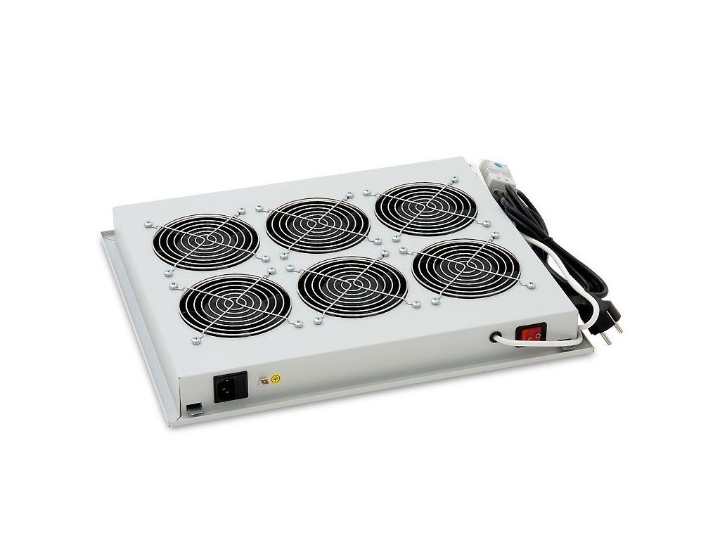 19" horizontal ventilation unit, 6 fans, 2U, 220V/90W, thermostat. Specifications: height: 2U placement: bottom/top fan: 6 x thermostat: yes cable type: 3x1.5mm colour: grey power consumption: 90 W power supply: 100- 240V These ventilation units are designed specifically for rack-mounted switchboards. They are mounted in the floor, cap or door of the cabinets as required. The new ventilation unit for rack-mounted switchgear - it is installed in the cap from the outside of the switchgear, and in the base from the inside of the switchgear. When installing into the base of the cabinet, it is necessary to use the mounting frame of the bottom ventilation unit - RAx-CH-XXX-X1, which is installed using double-sided adhesive tape.Additional parameters
