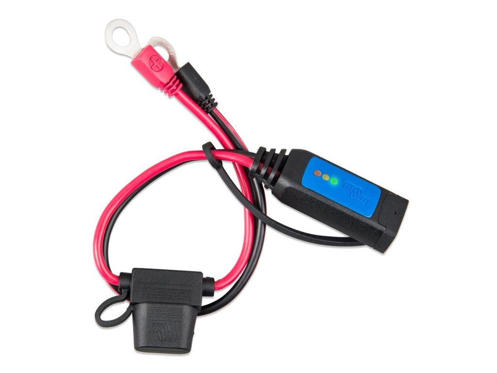 The battery status indicator shows the current battery status. It is an accessory for Blue Smart and Blue Power IP65 chargers. It is only suitable for 12V (not 24V) lead acid batteries (flooded, GEL, AGM). Easy to use Once the battery is discharged, it takes approximately 30 minutes for the battery to reach steady state and the panel to display the correct state value. - green light: the battery does not need to be charged. Battery 80%-100% - amber light: the battery can be charged. Battery 60%-80% - red light: battery needs charging. Battery 40%-60% - no light: charge batteries immediately to prevent sulfation. Batteries <40% Technical parameters: Voltage: 6-15V Maximum current: 30A Cable length: 0.3m Size: 22x18x55mm Weight: 0.17kg Protection Class: IP65 Eyelets: M8Additional parameters