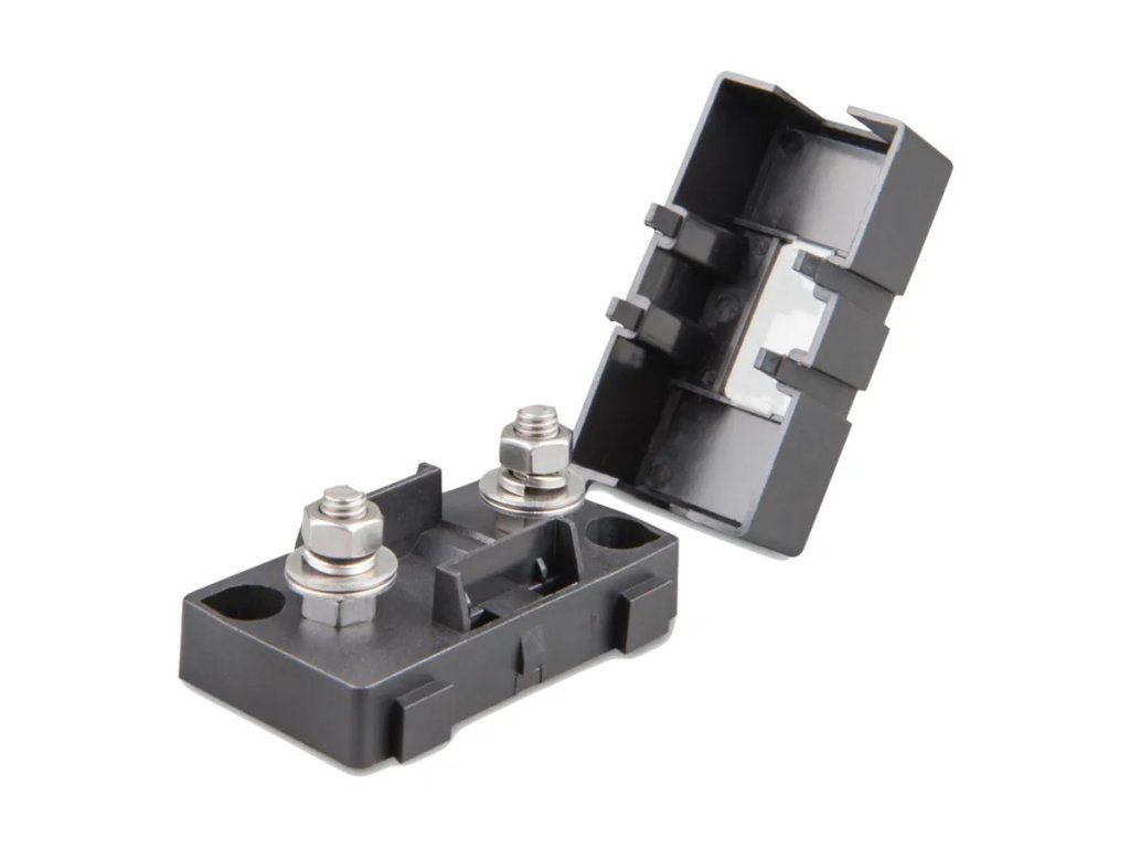 The Victron MIDI fuse holder can only be used with MIDI fuses. MIDI fuses are used to protect DC circuits with higher currents and are available in 100-200A/32V or 60-100A/58V. - 32V fuses are suitable for 12V and 24V systems - 58V fuses are suitable for 48V systems The holder has a removable cap. The fuses are fixed in the holder with a pair of M5 screws. Please note that this holder can only be used with MIDI fuses. Technical parameters: Connection type: screw clamp (M5) Max. input current (A): 200 Rated current and voltage (fuse): 200 A (32 V), 100 A (58 V) Material: plastic, metal Dimensions: 52 × 29.5 × 25 mmAdditional parameters