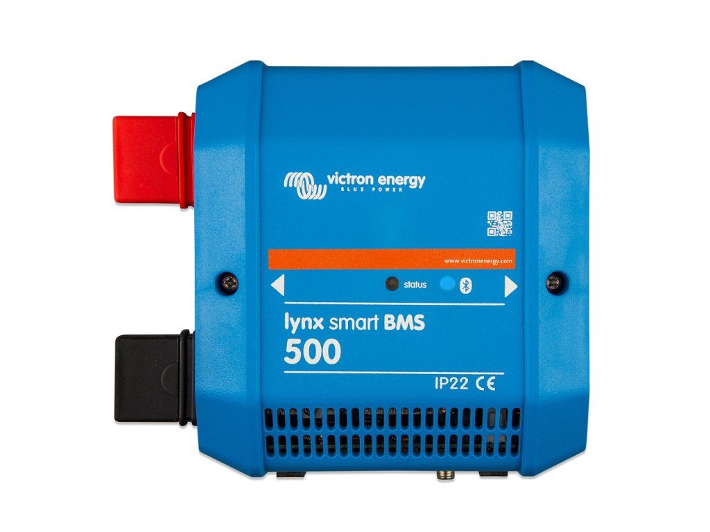 Lynx Smart BMS with built-in 500A contactor, integrated battery monitor, VE.Can and bluetooth. Lynx Smart BMS 500 is Victron Energy's Smart Lithium battery management device. Several BMS (battery management systems) are available for the Smart Lithium range of lithium batteries. The Lynx Smart device is the most comprehensive and complete option. Key features: - Built-in 500 A contactor, used as a backup safety mechanism and also available as a remote-controlled main switch. - Battery status monitoring, displays charge percentage and other data. - Prealarm: provides a warning before the system shuts down due to, for example, low cell voltage. - Bluetooth to use the device with our VictronConnect app to set up and monitor the system. - Local and remote monitoring using Victron GX devices such as Cerbo GX. The Lynx Smart BMS is part of the Lynx modular DC distribution systemAdditional parameters