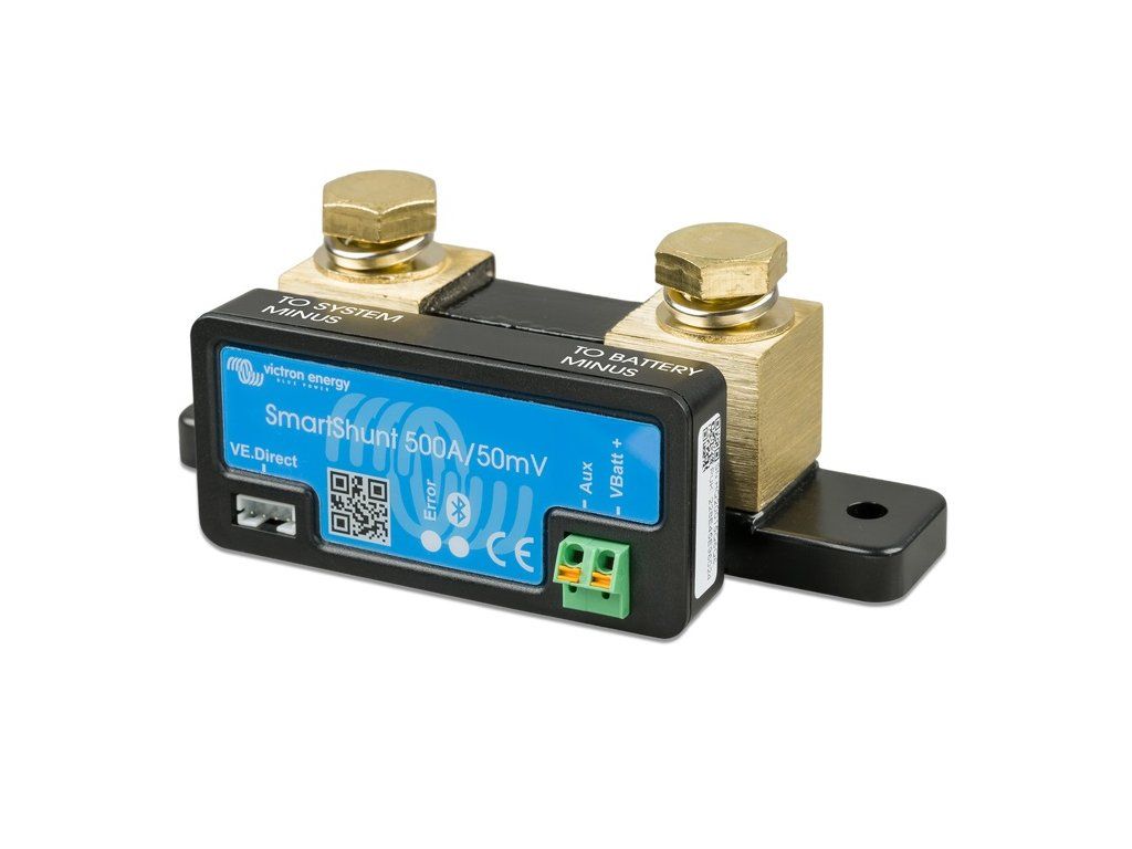 SmartShunt is a battery monitor just like the BMV series, only without the display. The display becomes your smartphone with the VictronConnect app. You can download the VictronConnect app for free on Google Play or in the App Store. SmartShunt connects via Bluetooth to the VictronConnect app on your smartphone (or tablet) and you can conveniently read all monitored battery parameters such as charge status, historical information and much more. Alternatively, the SmartShunt can be connected and read by the GX device. Connection to the SmartShunt is made using a VE.Direct cable. SmartShunt is a good alternative to the BMV battery monitor, especially for systems where battery monitoring is required but less cabling is required and a conventional display is not required. The SmartShunt features Bluetooth, a VE.Direct port and a connection that can be used to monitor a second battery, midpoint monitoring or to connect a temperature sensor.Additional parameters