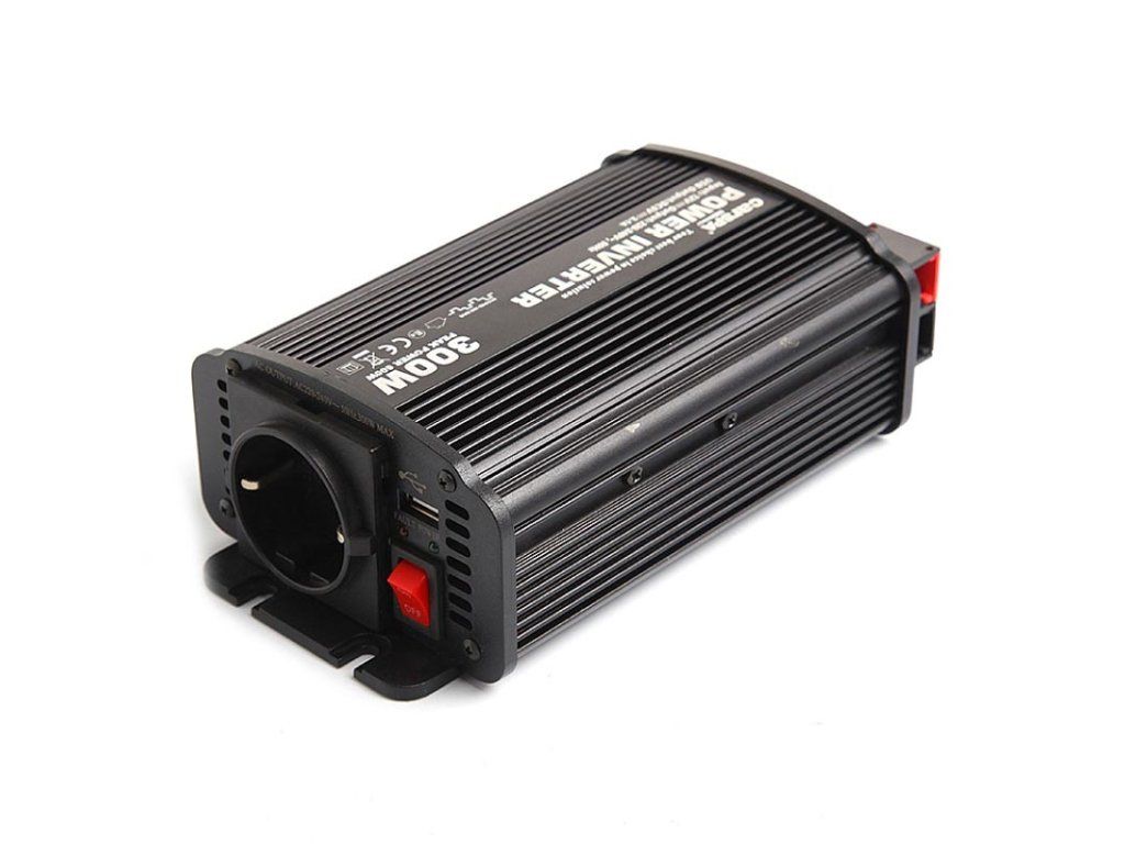 Carspa inverters are one of the most popular devices on the market.The inverter transforms DC current from a 24V battery into AC current at 230V. Thanks to this, you can use your favourite appliances such as camera chargers, cameras, mobile phones, tablets, laptops and other devices up to 300W even in places where mains power is not available, making it an ideal solution for travelling.