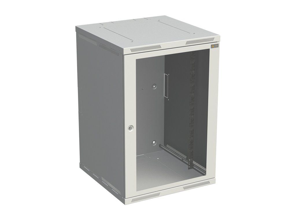 Wall switchboard SENSA 18U 500mm, glass door, RAL 7035, SENSA-18U-65-11-G