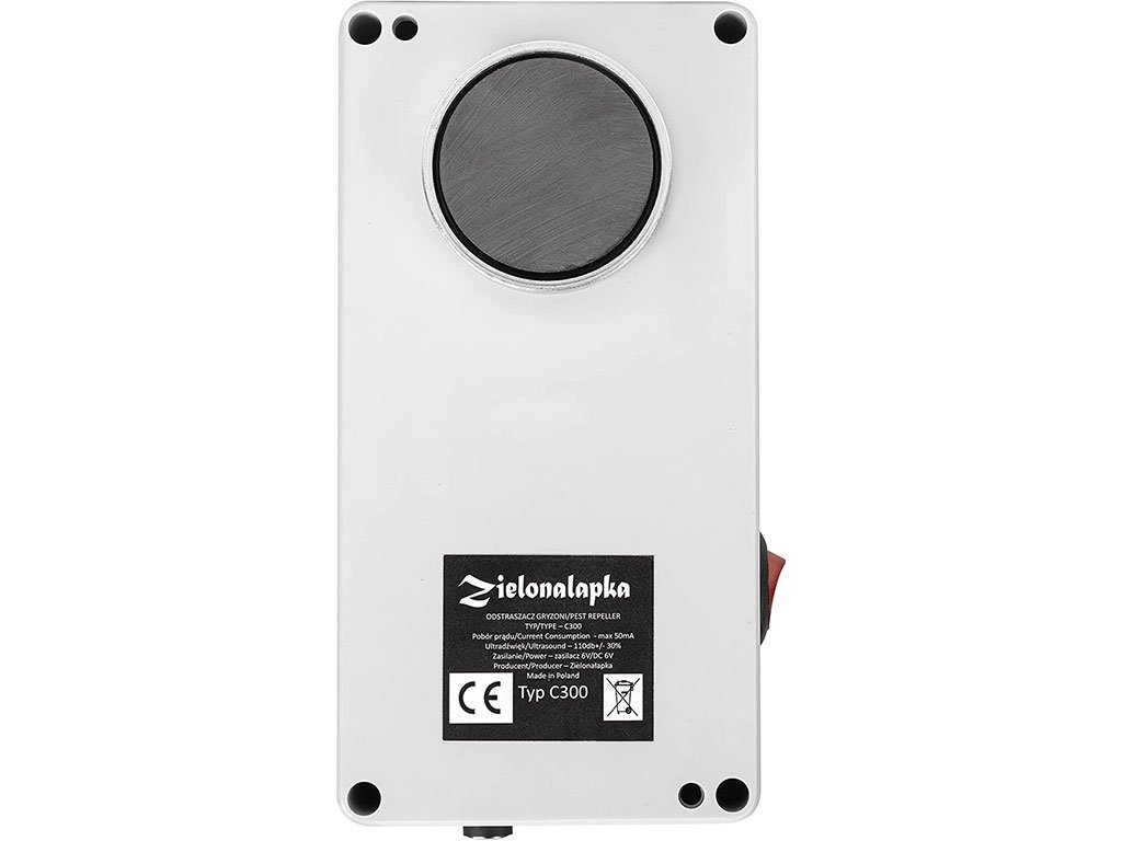 Zariadenie je napájanévia 6V adapter, which is included in the package. Simply plug the adapter into the mains and then control the operation of the repeller according to your needs using the switch located on the side.