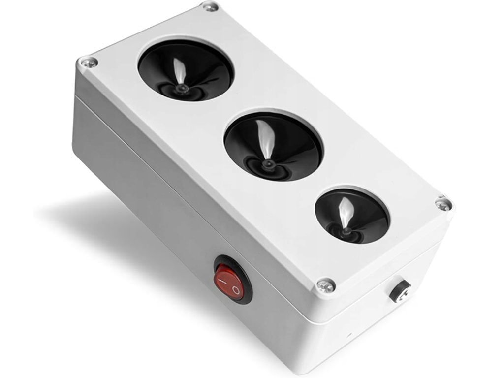 Zariadeniegenerates ultrasonic signalswhich are unpleasant for martens and rodents, and as a result they leave the protected areas after a short time. The device emits sounds of variable frequency, ranging from completely inaudible to a light to squeaky tone. This automatic the change in frequency ensures that the pest does not get used to the sound and return. The ultrasonic signal reflects very well off solid surfaces, increasing its range. Equipped with three membrane speakers, which are several times more powerful than metal speakers, this repeller has an effective range ofindoors up to 3000 m2, in outdoor areas up to 25 mwithin 180°.