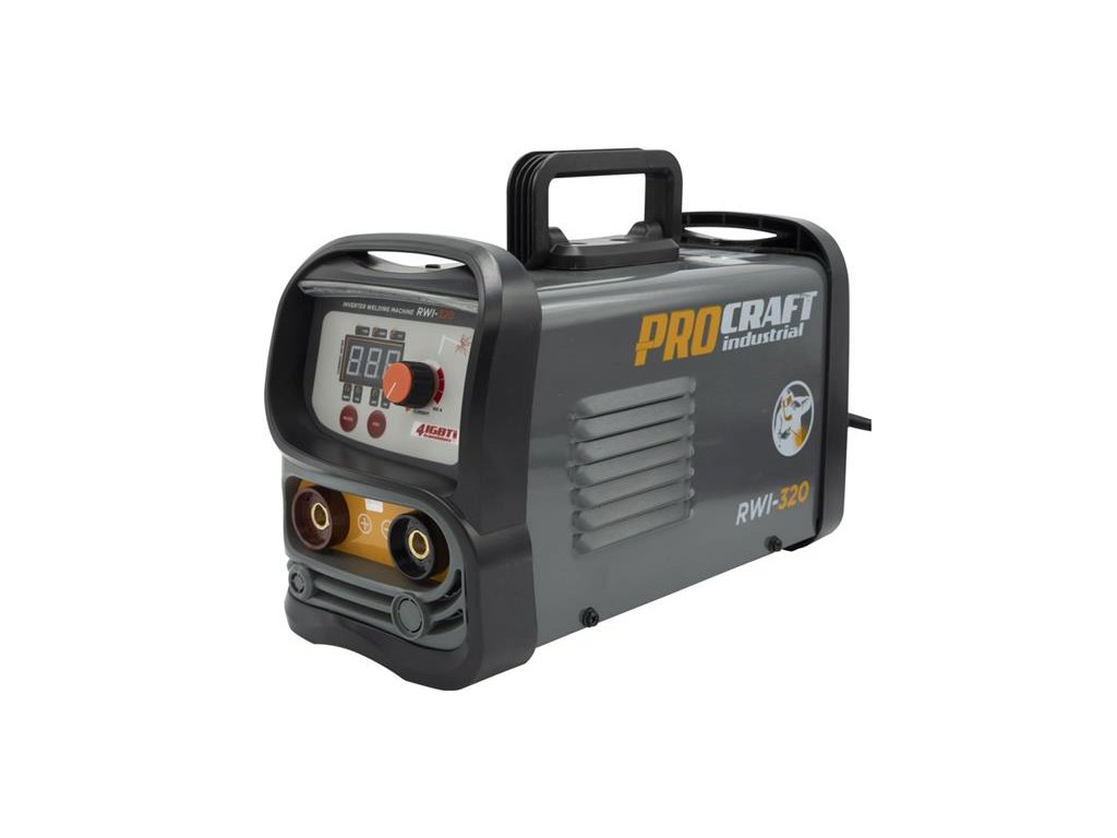Zvárací invertor Procraft RWI-320 je určený na ručné zváranie metódou MMA. Výkonové tranzistory IGBT zaručujú dlhú bezporuchovú prácu. Regulácia zváracieho prúdu v rozsahu 20-160 A umožňuje nastavenie optimálnych parametrov pri práci s rôznymi kovmi. Je možné použiť zváracie elektródy s priemerom 1,6 až 4,0 mm. Funkcia arc force, anti stick, hot štart zaručujú rýchle a ľahké zváranie. Pomocou LCD Displeja je zobrazovaný aktuálny zvárací prúd. Súčasťou dodávky je zváračský štít, kábel s držiakom elektród, kábel so zemniacimi kliešťami a drôtená kefa kombinovaná s kladivom na trosku.