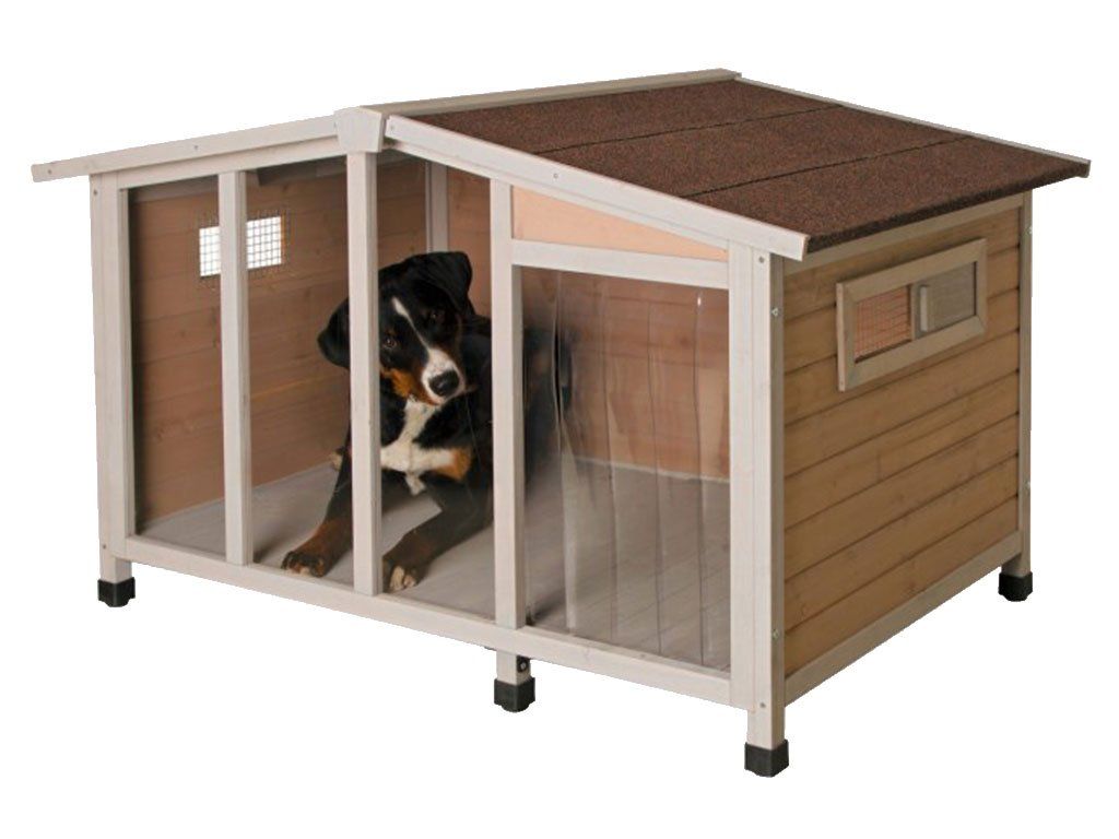 - The dog kennel haswooden walls treated with a protective varnish, to protect the shed and make it last for years.The protective coating should be repeated once in a while for even greater durability.