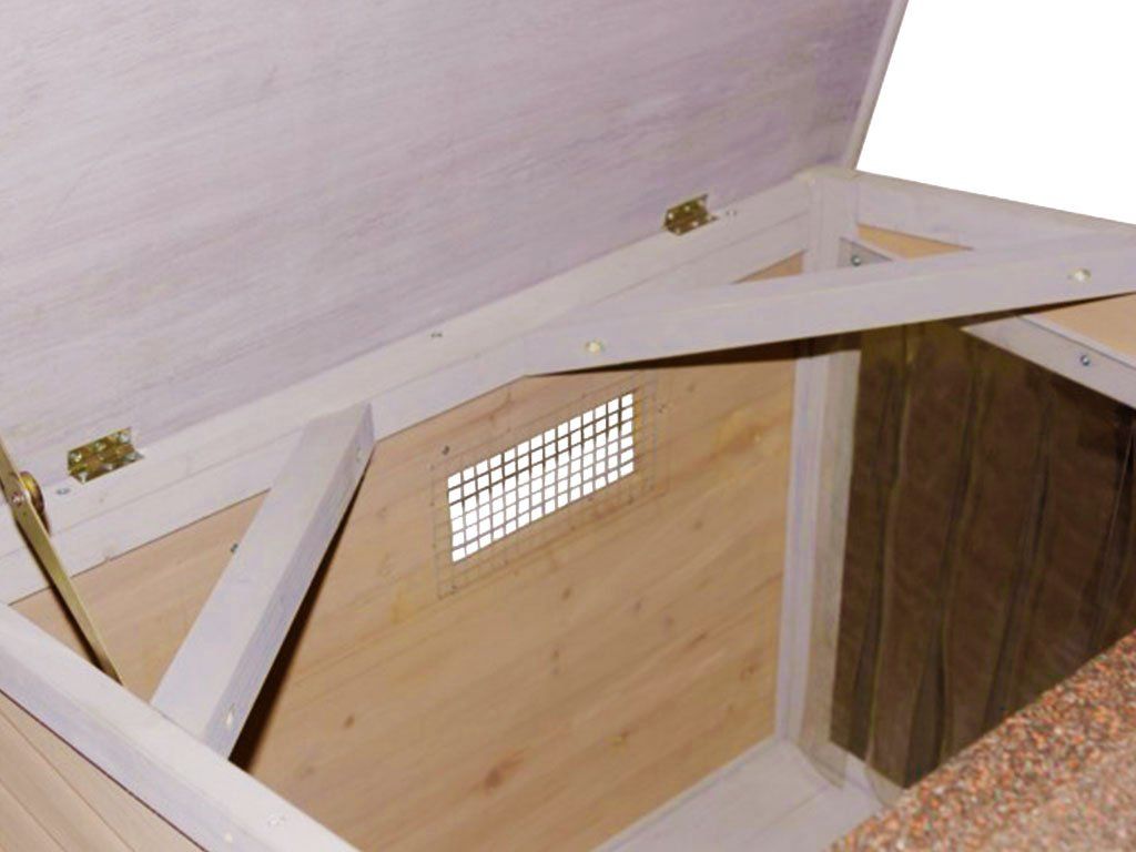 - The roof of the shed is coveredbituminous covering, which prevents the dog from running into the kennel and keeps the dog dry, safely hidden from the rain.Bothroof wings can beunhackto make access to the shed as convenient as possible for cleaning and maintenance.