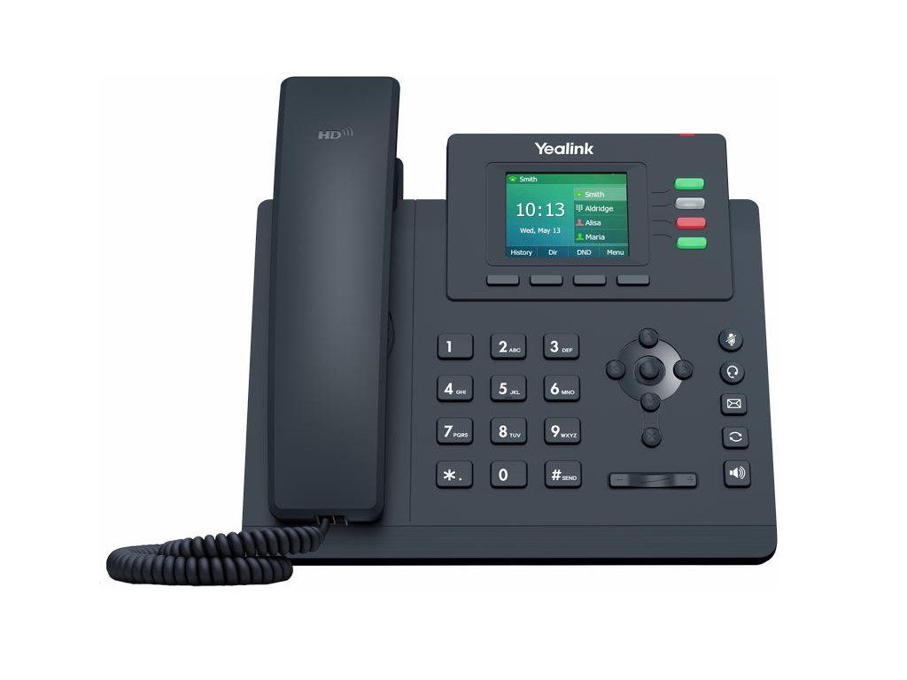 The SIP-T33G is a fashionable and user-friendly basic colour IP phone with high performance. It has a large 320x240 pixel backlit color display that ensures easy access to much more visual information at a glance. The SIP-T33G offers support for 4 VoIP accounts, two 10/100/1000 Mbps network ports with integrated PoE and allows up to 5-way local conferencing. It also includes EHS35 support for Yealink wireless headsets. The stand has been designed specifically for efficient working and allows the phone to be set at two angles and mounted on the wall. Main features: Yealink HD Voice 2.4" 320 x 240 pixel colour display with backlight Two Gigabit Ethernet ports PoE power supply Opus codec support 4 SIP accounts Local five-way conferencing EHS wireless headset support Unified firmware Stand with two adjustable angles Wall mounting Package includes Yealink power adapter YDMP/YMCS support The entire T3 series is equipped with a powerful chip and has stronger computing capabilities and enhanced features, ensuring higher productivity and a smoother user experience. With high performance, the T3 series is able to extend multiple services for different business requirements. The Yealink T3 Series provides distraction-free communication with Smart Noise Filtering Technology, which delivers superior sound quality without unnecessary noises and enables smooth conversations. Designed by Yealink's design team, the T3 series inherits the design concept of the Yealink family of phones. The advanced design, including a modern look and ergonomic details, allows users to operate it more easily and enjoyably. Hall switch that makes no sound when lifting or putting on the handset. Provides a quieter workspace and longer life. Adjustable multi-angle stand, ideal for different situations based on your actual needs. Allows you to mount your phone on the wall, one accessory with two installation modes. Adapter included Yes 5 way audio conferencing Display resolution 320 x 240 Display type backlit, color By installation location call center, medical facility, school, open space, office By profession logistics worker, doorman, administrative worker Ethernet ports 2 x RJ45 10/100/1000 Mbps Operating system Linux Number of SIP accounts 4 PoE power supply Yes RJ9 port for Handset, Headset uSB port No Program buttons 4 Dimensions 238 x 210 x 103 mm LAN speed 10/100/1000 Mbps Display size 2.4" Wall mount YesAdditional parameters