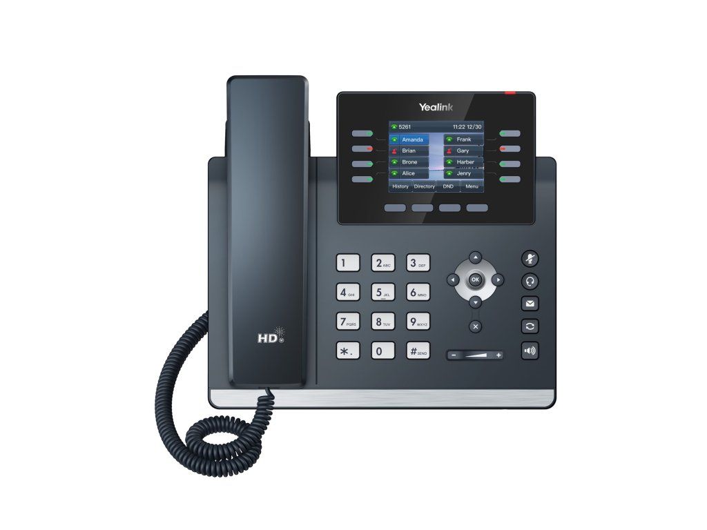 The sleek Yealink SIP-T44U executive phone is part of a new range of phones from Yealink, the world's leading provider of business communications solutions. The T4U series significantly improves the call experience and work efficiency with two USB ports, Ultra HD quality audio , faster response speeds and even more advanced features. The new T4U series is a powerful tool for modern business. The SIP-T44U features a 2.8-inch backlit color display with 320 x240 pixel brightness. The attractive clean design with a metal bar suits any modern office. The Yealink SIP-T44U phone has 12 SIP accounts and two 1 Gbs Ethernet ports with PoE support. It offers 21 programmable buttons that can be assigned many different functions. The phone also features color LED indication. It also supports up to 5-way group conferencing and with EHS support, you can easily connect a wireless headset to it. Key features: - 2.8" 320 x 240 pixel graphic colour LCD display with backlight - Dual USB ports - Up to 12 SIP accounts - PoE support - Gigabit Ethernet with two ports - USB headset and EHS support - Wi-Fi via WF40/WF50 - Bluetooth via BT40/BT41/BT51 - Supports expansion modules for color screen (EXP43) - Stand with 2 adjustable angles - Wall mounting TECHNICAL SPECIFICATIONS Adapter included No Audio conferencing 5 way conference Display resolution 320 x 240 Display type graphic, backlit By installation location call center, medical facility, school, open space, office By profession switchboard operator/assistant, manager, doorman, administrative worker Ethernet ports 2 x RJ45 10/100/1000 Mbps Compatible modules BT40 Bluetooth adapter, WF40 Wi-Fi adapter, EHS40, WF50, BT41, BT51 Linux operating system Number of SIP accounts 12 PoE power supply Yes RJ9 port for Handset, Headset uSB port 2 x USB Program buttons 5 LAN speed 10/100/1000 Mbps Display size 2.8" Wall mount YesAdditional parameters