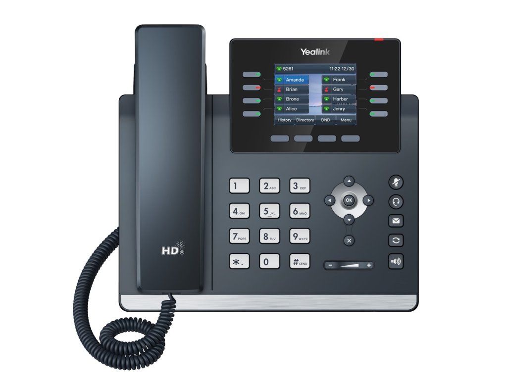 The sleek Yealink SIP-T44W executive phone is part of a new range of phones from Yealink, the world's leading provider of business communications solutions. The T4 series significantly improves the call experience and work efficiency with two USB ports, Ultra HD quality audio , faster response speeds and even more advanced features. The new T4U series is a powerful tool for modern business. The SIP-T44W features a 2.8-inch backlit color display with 320 x240 pixel brightness. The attractive clean design with a metal bar suits any modern office. You'll appreciate the United Yealink Optima HD Voice technology for sound quality and crystal clear voice communication.The Yealink SIP-T44W features 12 SIP accounts, built-in Bluetooth 4.2 and dual-band 2.4G/5G Wi-Fi. The SIP-T44W will ensure you keep up with modern wireless technology. It offers 21 programmable buttons that can be assigned many different functions. The phone also features colour indication with LEDs. It also supports up to 5-way group conferencing and with EHS support, you can easily connect a wireless headset to it. Key features: - 2.8" 320 x 240 pixel graphic colour LCD display with backlight - Dual USB ports - Up to 12 SIP accounts - Built-in Bluetooth 4.2 - Built-in dual-band 2.4G/5G Wi-Fi (802.11a/b/g/n/ac) - PoE support - USB headset and EHS support - Supports expansion modules for color screen (EXP43) - Stand with 2 adjustable angles - Wall mount TECHNICAL SPECIFICATIONS Adapter included No Audio conferencing 3 way conference Display resolution 360 x 160 Display type graphic, backlit By installation location call center, medical facility, school, open space, office By profession switchboard operator/assistant, manager, doorman, administrative worker Ethernet ports 2 x RJ45 10/100/1000 Mbps Compatible modules BT40 bluetooth adapter, WF40 Wi-Fi adapter, EHS36 wireless headset adapter Linux operating system Number of SIP accounts 12 PoE power supply Yes RJ9 port for Handset, Headset uSB port 2 x USB Program buttons 8 Dimensions 224.9 mm x 206.2 mm x 174.9 mm LAN speed 10/100/1000 Mbps Display size 3.7" Wall mounted YesAdditional parameters